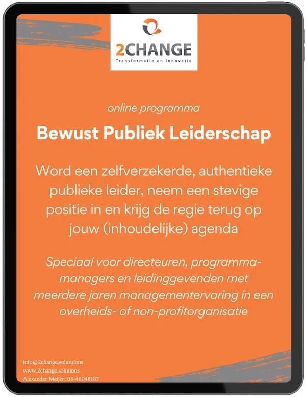 Precies daarvoor heb ik het online 3 maanden, praktisch toepasbare programma Bewust Publiek Leiderschap gemaakt.